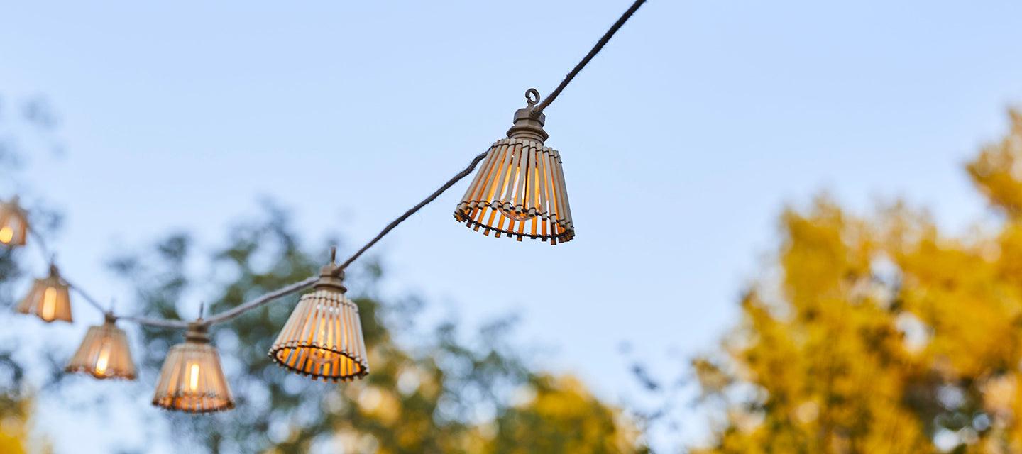 Guirlande lumineuse extérieure raccordable 6m avec 7 ampoules LED filament E27 blanc chaud HAVANA STRING LIGHT Abat-jour en paille bohème