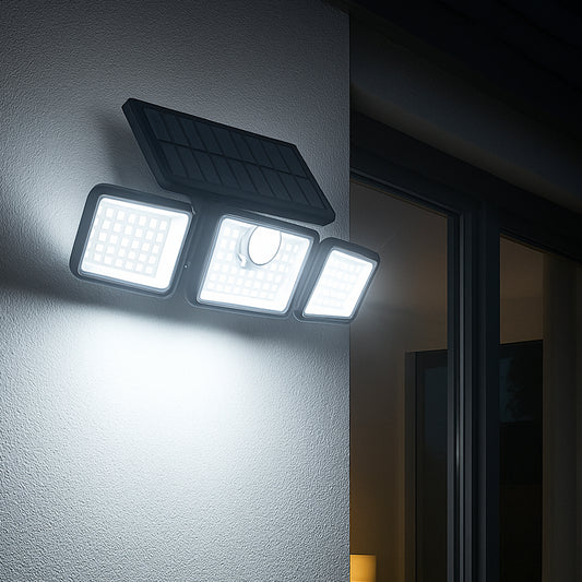 Lot de 2 Spots Solaires à 3 Têtes Noires GLEAMAX - Éclairage LED Blanc Puissant, Orientables avec Détecteur de Mouvement et Télécommande, Idéaux pour Jardin, Terrasse et Extérieur