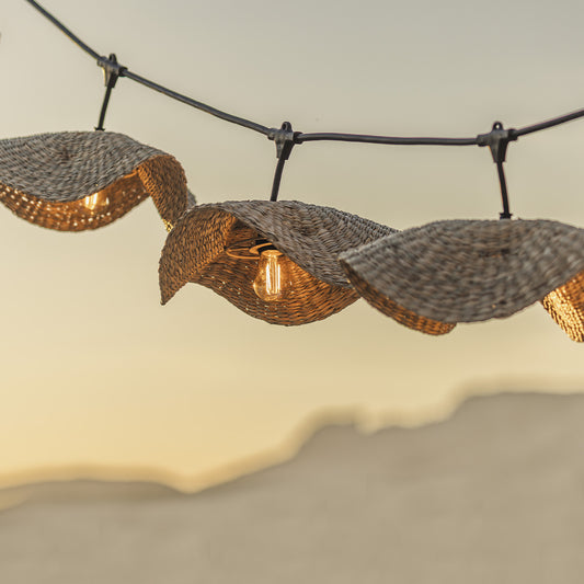Guirlande lumineuse raccordable d'extérieur avec abat-jour en jacinthe d'eau naturelle style bohème 7 ampoules à filament douille E27 LED blanc chaud MOOREA LIGHT CONNECTABLE 6m