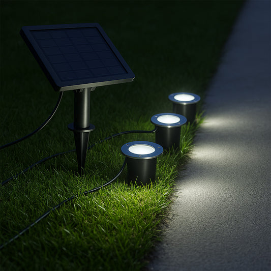 3 Spots Solaires bord de piscine avec Panneau solaire déporté 3x SOLPOOL LED Blanc chaud H10cm