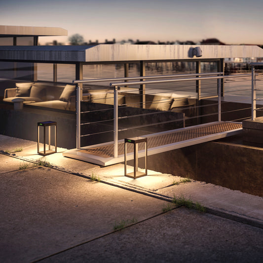 Borne solaire aluminium SWING LED blanc chaud puissant H15cm