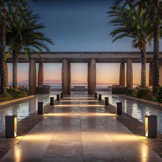 Borne solaire LED blanc chaud RADIA MINI aluminium éclairage puissant H35cm