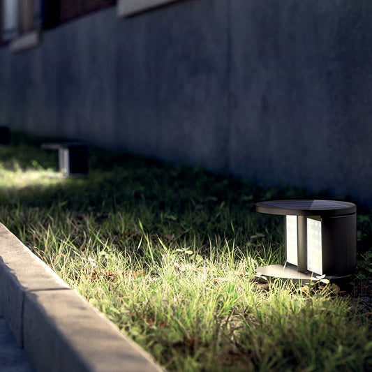 Borne solaire LED blanc chaud RADIA GROUND aluminium éclairage puissant H24,5cm