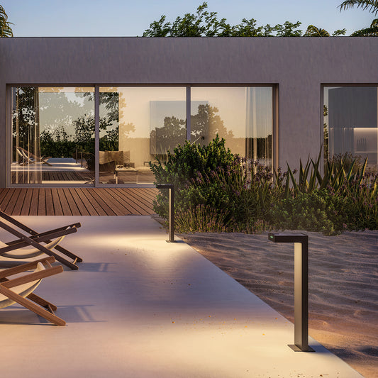 Borne solaire aluminium LED puissant blanc chaud MILIO SIDE H35cm