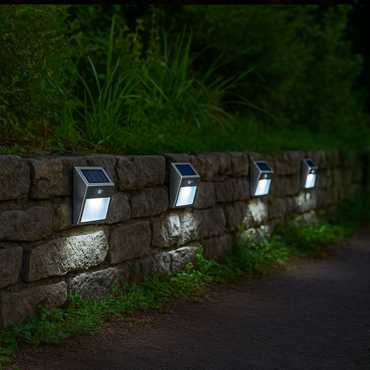 Lot de 2 projecteurs solaires inox applique murale escalier balisage LED blanc WALLY H10cm