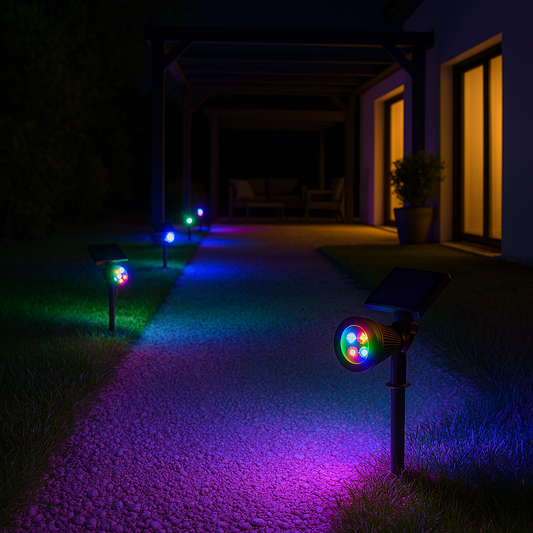 Lot de 2 spots solaires projecteur 2 en 1 à piquer ou à fixer dimmable LED multicolore SPIKY C34 H42cm