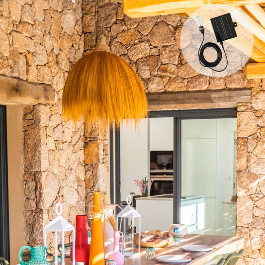 Suspension solaire DARMA SOLAR en rotin naturel avec câble hybride secteur et solaire 5m de longueur