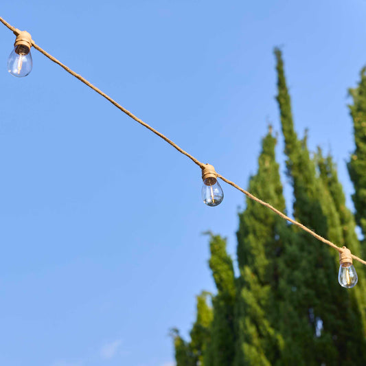 Guirlande lumineuse solaire et sur secteur raccordable en corde 20 ampoules transparentes LED blanc chaud dimmable NATURA LIGHT HYBRID 13m