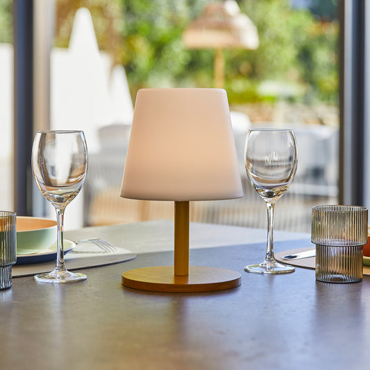 Lampe de table sans fil pied en bambou naturel LED blanc chaud/blanc dimmable STANDY MINI WOOD H25cm