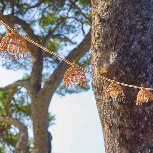 Guirlande lumineuse extérieure 6m avec 10 ampoules LED filament E27 blanc chaud HAWAII LIGHT Abat-jour polyrotin bohème