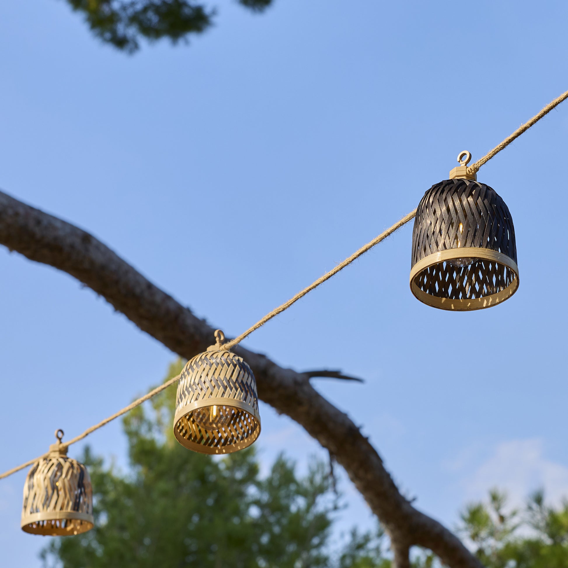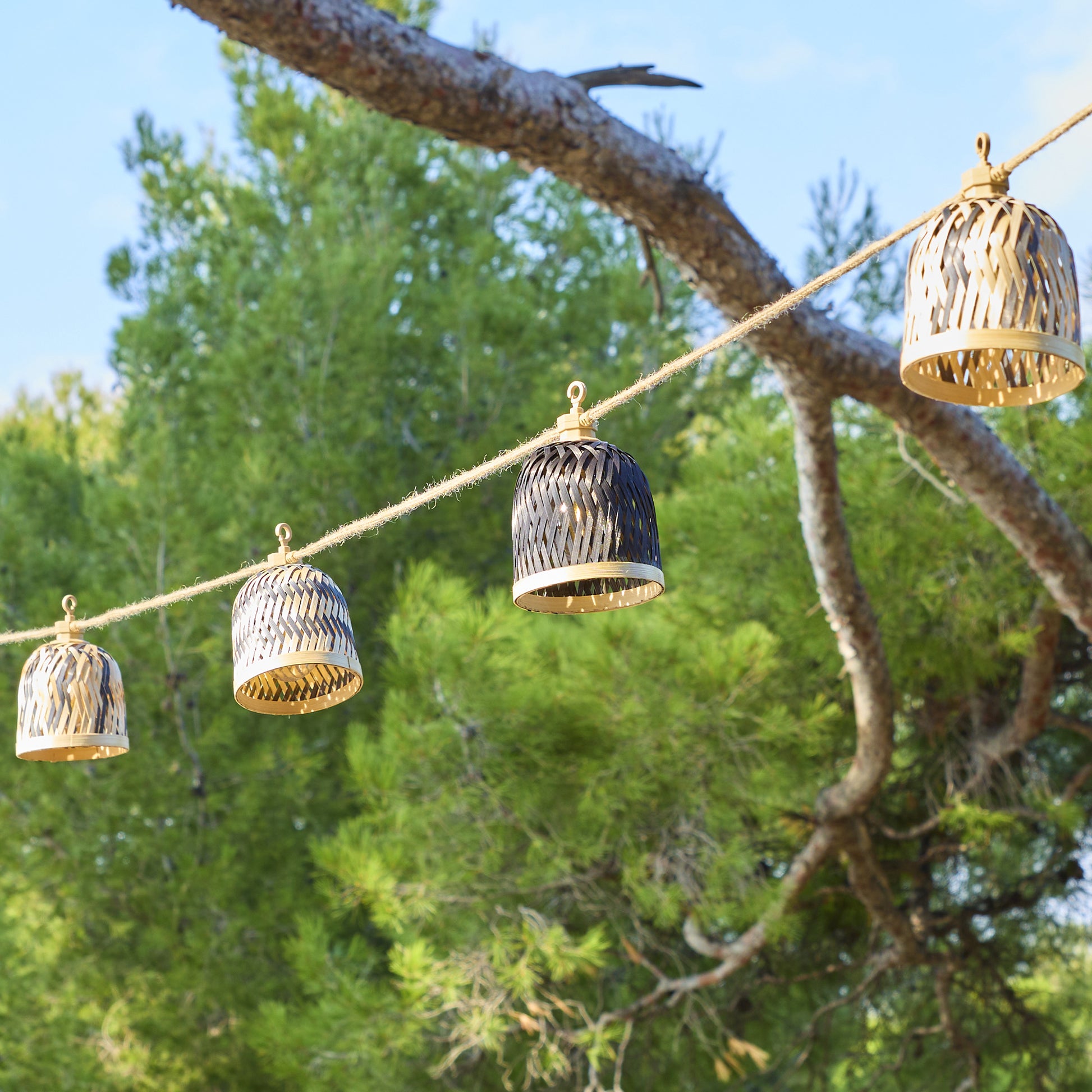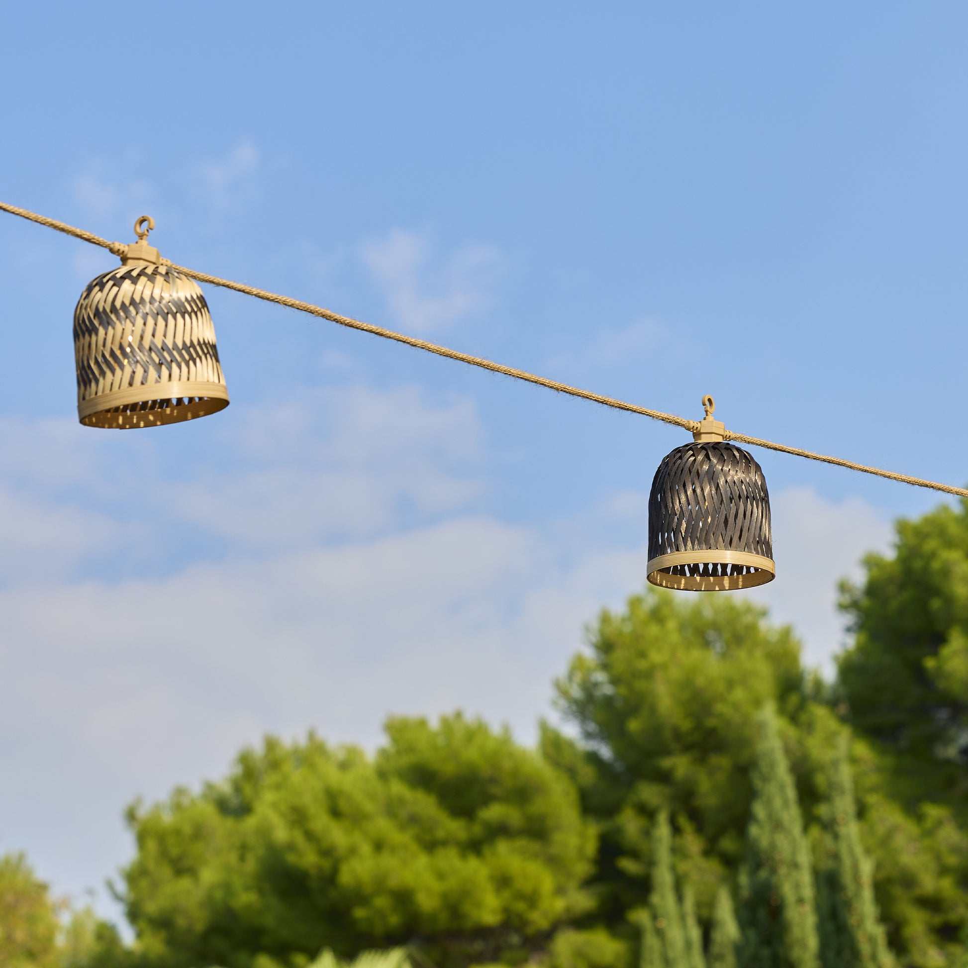 - Guirlande LED Hybride : Dotée de 10 abat-jour en bambou naturel aux motifs différents beige et noir, la guirlande Lina Light Hybrid crée une atmosphère exotique et conviviale en extérieur. Son éclairage blanc chaud, à la fois doux et festif, réussit à marier avec élégance la simplicité et l'esprit festif. Elle s'harmonisera avec tous les types de terrasses, offrant un éclairage apaisant pour rendre vos soirées en extérieur encore plus agréables.