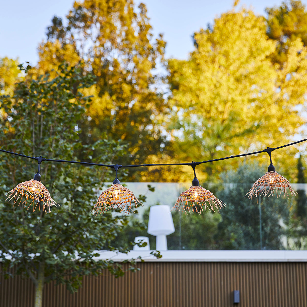 Guirlande lumineuse extérieure raccordable 34m avec 80 ampoules LED filament E27 blanc chaud HAWAII LIGHT Abat-jour polyrotin bohème
