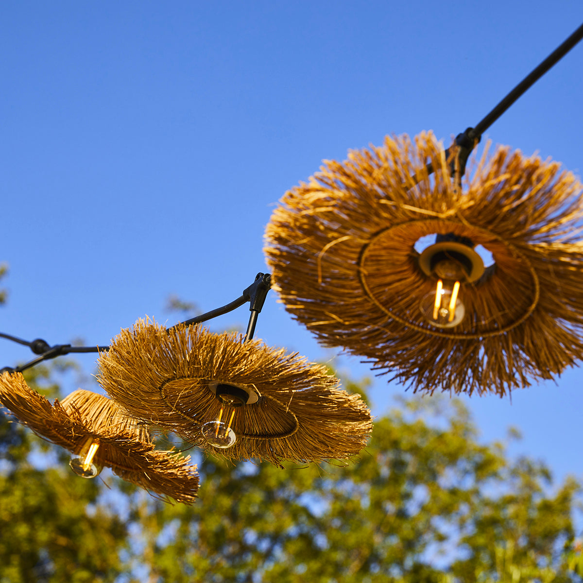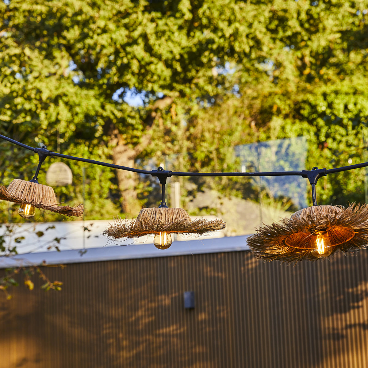 Guirlande lumineuse extérieure raccordable 6m avec 7 ampoules LED filament E27 blanc chaud TAHITI LIGHT Abat-jour en paille bohème