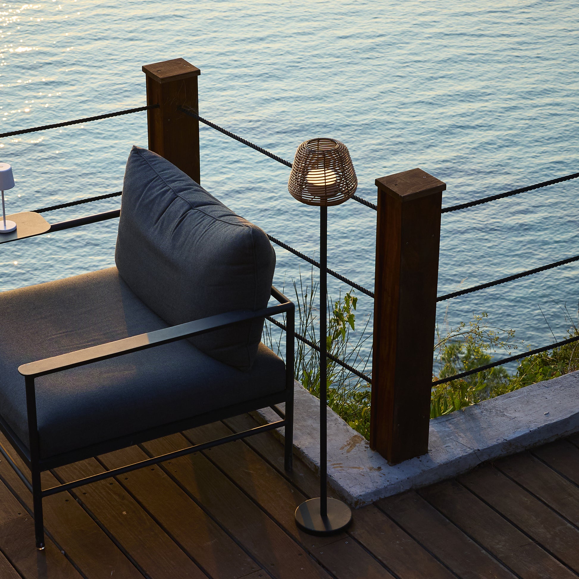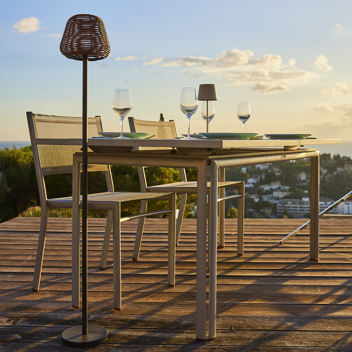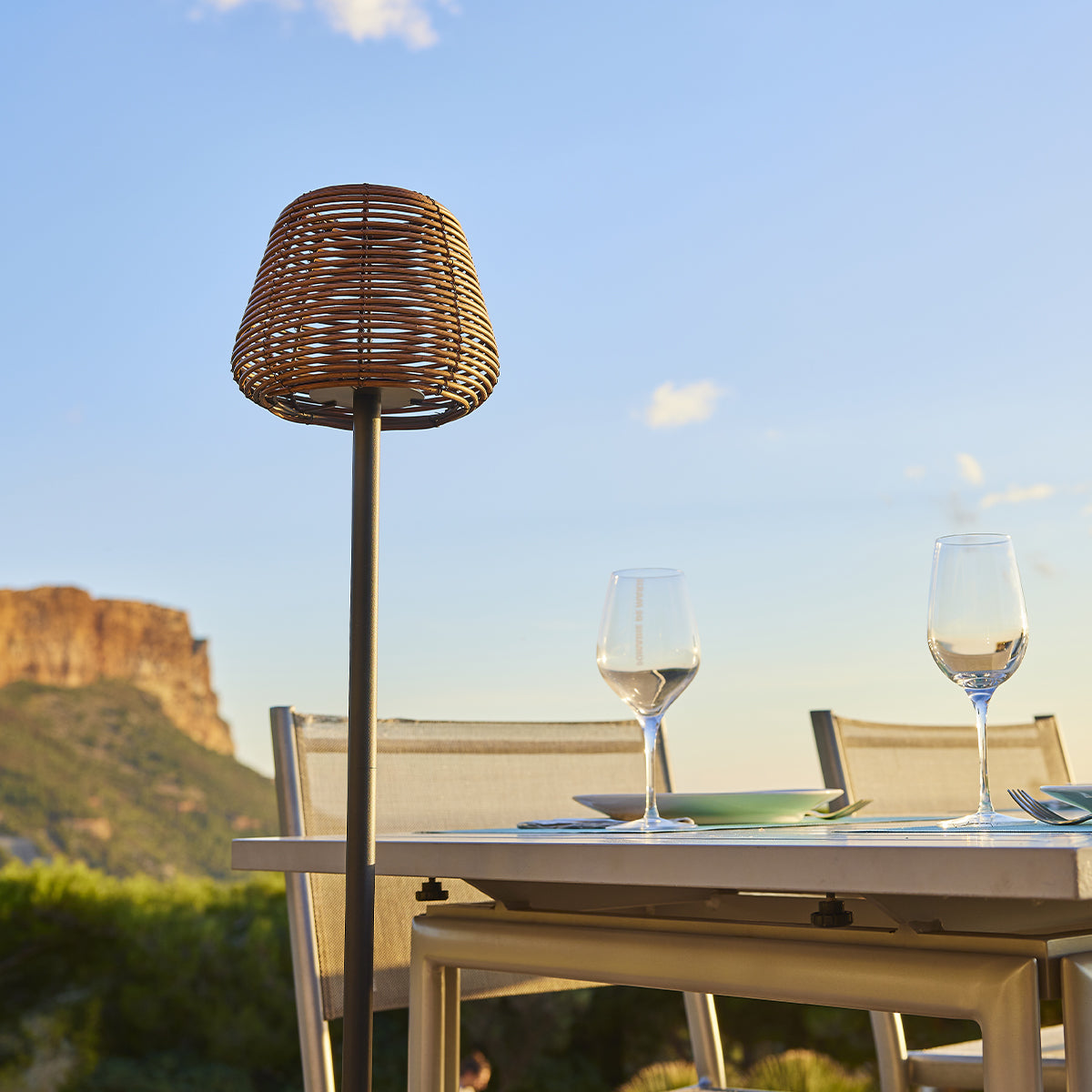 Lampadaire nomade design poly rotin pour extérieur LED MIDY BOHEME H120 cm