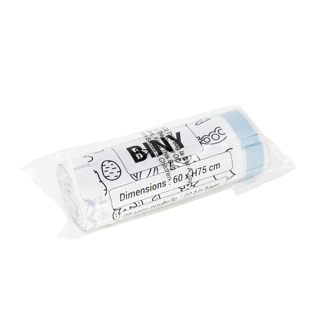 Lot de 120 sacs poubelles blanc 50L 60 x H75 CM BINY Ultra résistant 23 microns avec lien coulissant