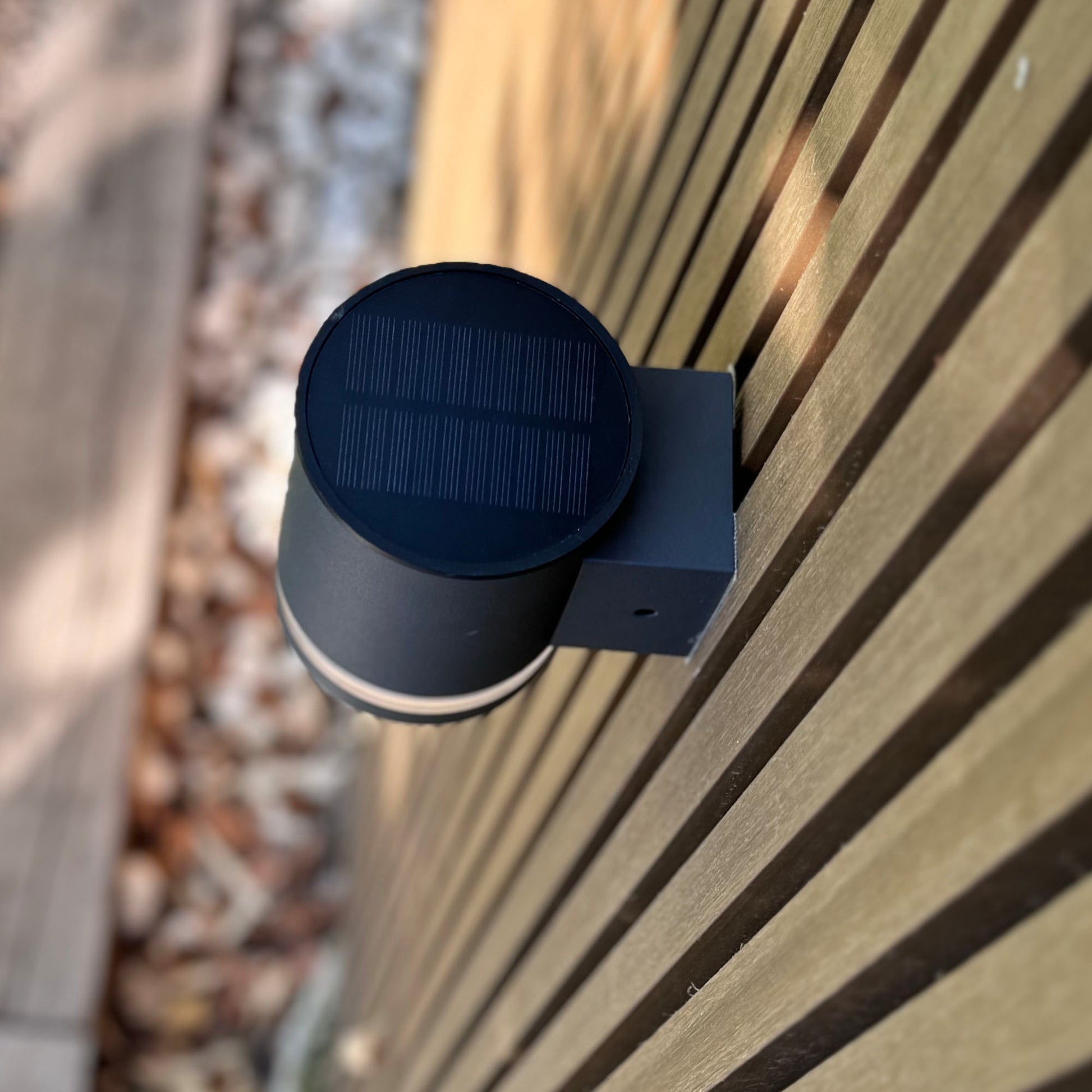 Lot de 2 Appliques Murales Solaires Gris Foncé HELIO - Design Cylindrique Moderne, LED à Lumière Blanc Chaud, Étanches et Idéales pour Jardin, Terrasse et Extérieur