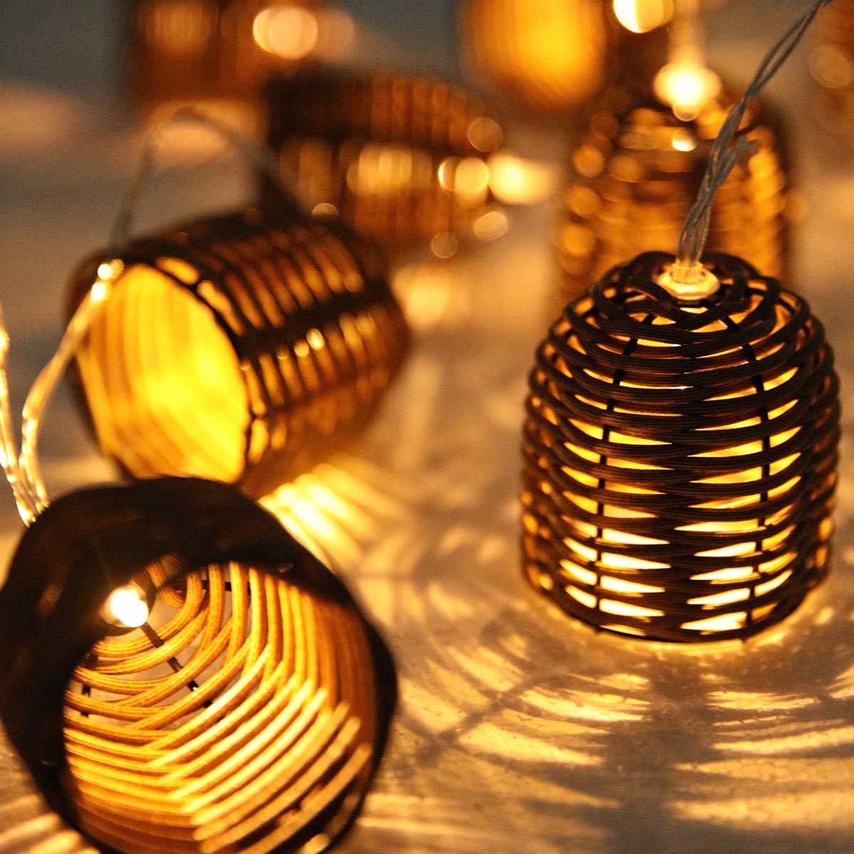 Lot de 2 guirlandes lumineuses solaires 10 abat-jour poly rotin LED blanc chaud FORMENTERA 3.80m