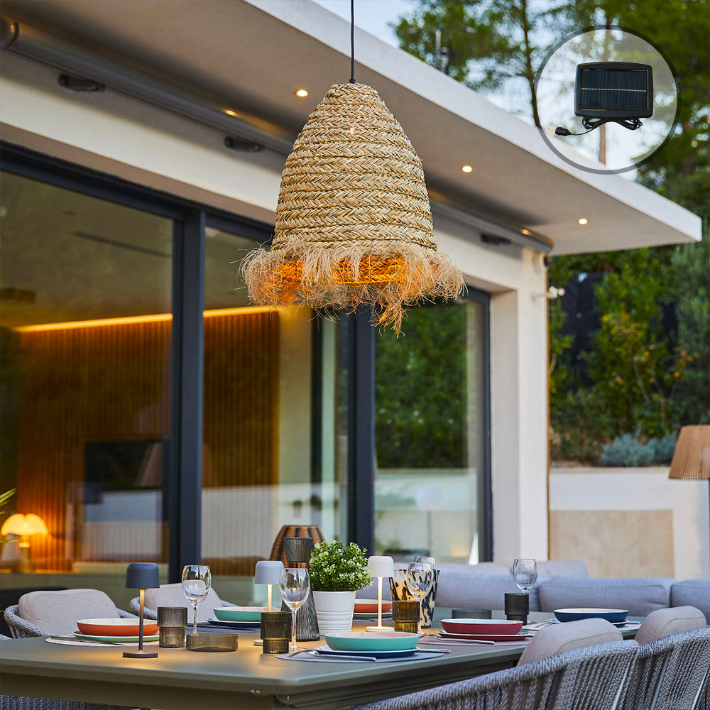 - SUSPENSION SOLAIRE LED : ANAFI SOLAR est une suspension solaire LED blanc chaud. Elle apportera à votre décoration une touche naturelle. Exotique et chaleureuse, elle mettra en lumière un intérieur moderne et va s'adapter parfaitement à un style plus bohème ou vintage grâce à son look ethnique chic. Son tressage unique va sublimer votre espace de vie. Dimensions : 41 x 41 x 47 cm